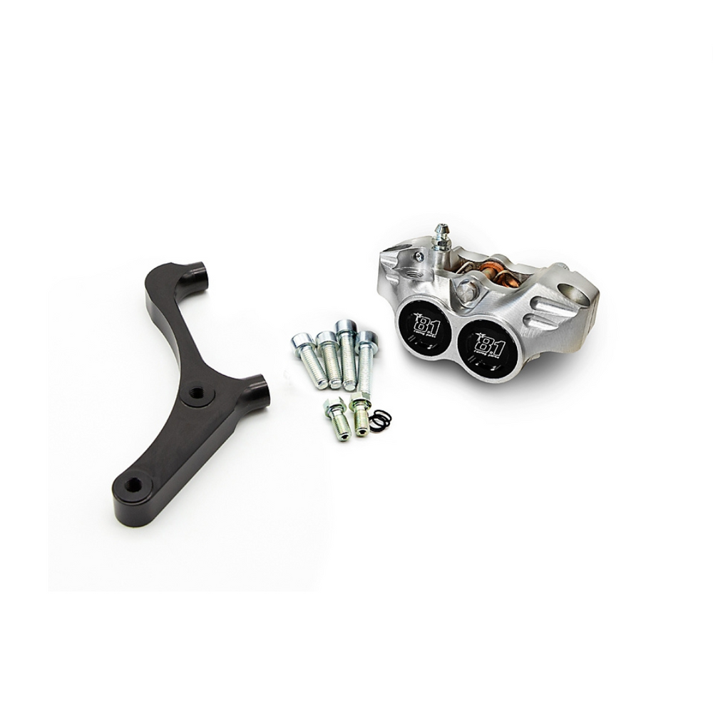 The Ottopuntno Remlauw Kit New Era behind for Runner 125-180CC 2 TAKT offers powerful braking performance thanks to the 8.1 4-piston caliper and anodized Ergal support, complete with mounting details. Designed for mounting with original 240mm discs and standard pumps with M10 screw thread. Including M8x1 connecting bolt, sealing O-rings, M8-10 Reduction connection bolt for Ø10mm tubes, and 4 M8 mounting screws. Ideal for racing use, not suitable for public roads. Made in Italy, for optimum performance on the circuit.