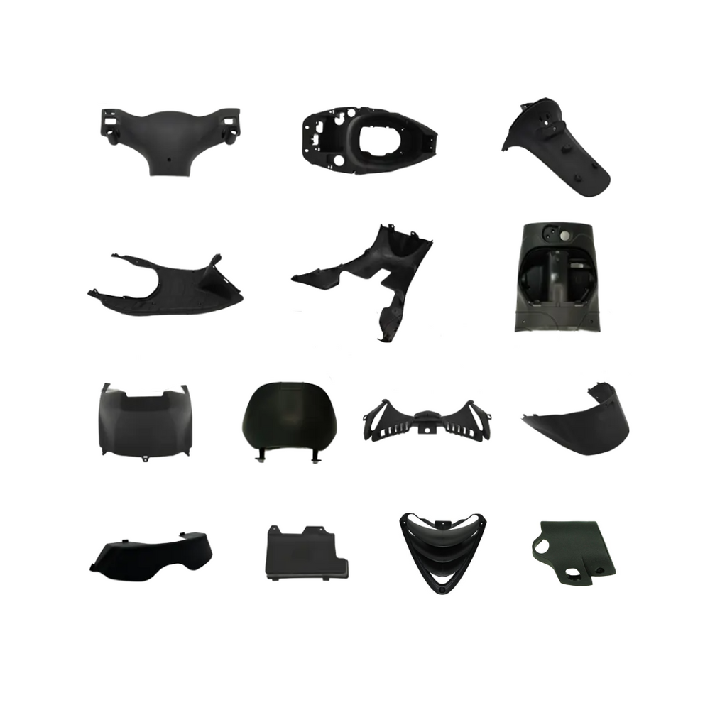 The inner cap set complete Piaggio Zip is the ultimate upgrade for your scooter. This extensive set not only offers all the standard inner hoods, but also contains extras such as a buddy bin, grill for the front cover, radiator cap, battery cover and brake jar that you don't get with our other set. Perfect for Piaggio ZIP owners who want to personalize and protect their scooter with high-quality parts. This set offers everything you need for a complete makeover, so that your scooter looks like new and functions optimally.
