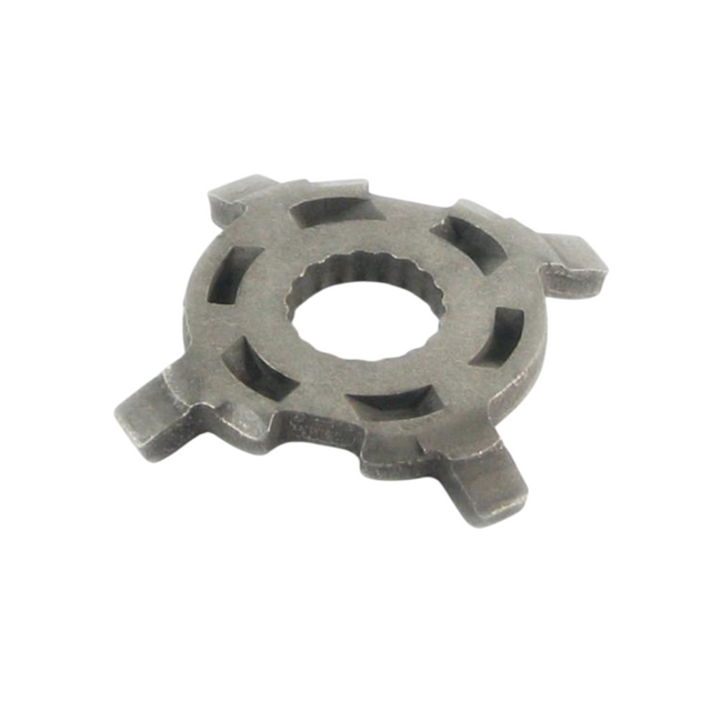 The Kickstarter-claw Piaggio old type is an essential part for various Piaggio models. This claw is suitable for the Typhoon, Runner, NRG, NTT, Sfera and Zip, and ensures a reliable effect of the kickstart mechanism. The part is of high quality and offers a sustainable solution for replacing a worn or damaged kickstarter mechanism. With this Kickstarter claw you can quickly and easily bring your Piaggio scooter back into top condition.