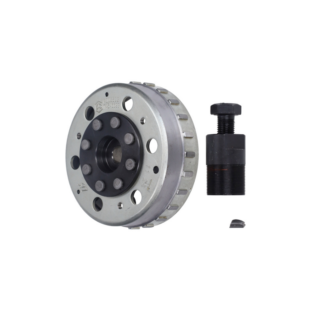 This twisted flywheel DDL is specially designed for the Piaggio Iget Euro 4/5 engines. The flywheel has been carefully processed to improve performance, with more efficient power transfer and an improved operation of the engine. It offers a perfect fit for the Piaggio Iget Euro 4/5 engines and is ideal for replacing a worn or damaged flywheel. Made from sustainable materials, it ensures reliable operation and a longer lifespan of your motorcycle.