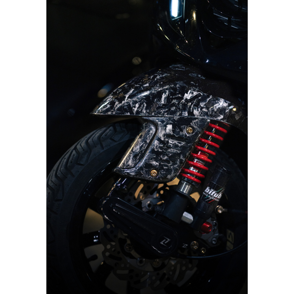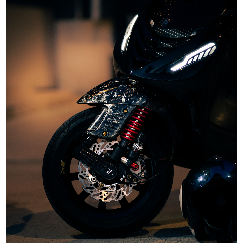The ZIP SP front fender in the forged carbon for a Piaggio Zip is a very unique product. With its authentic forged carbon finish, this product adds a stylish look to your Piaggio Zip. Each front fender is made by hand, which means that each piece is unique. As a result, small spots are inevitable and it may be that the fit is not perfect (atesle something), but this emphasizes the traditional quality of the product.
