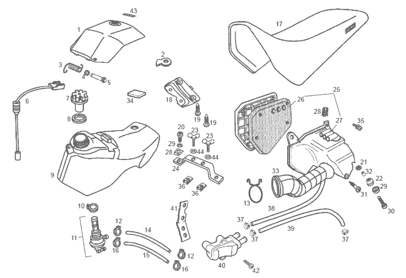 Derbi Senda SM 50 2T DRD Edition Black E2 2005 - Benzinetank, Luchtfilter & Zadel