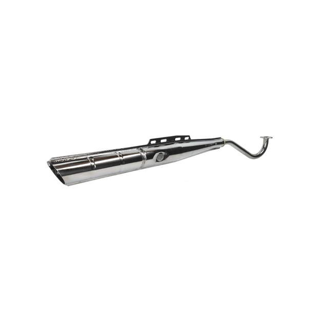 The Exhaust + Logo 22mm Chrome - Puch Maxi is a stylish and powerful upgrade for your Puch Maxi. This chrome -colored exhaust not only offers improved performance, but also gives your scooter a sporty and modern look. With a diameter of 22 mm, this exhaust is perfectly tailored to the Puch Maxi, so you can optimally enjoy speed and sound. The built -in logo adds an extra personal touch. Increase the performance and style of your Puch Maxi with this high -quality exhaust!