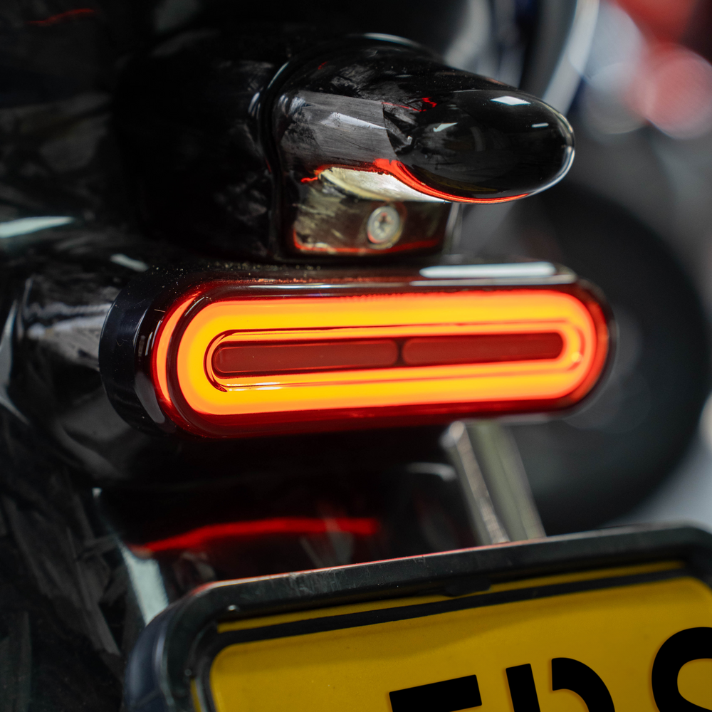 The LED Flow/Matrix Reflector rear fender Piaggio Zip is the perfect styling product to make your zip even more unique! This LED reflector has a flow/matrix startup effect and built -in matrix flashing lights! This reflector also has red daily row lighting and a brake light that looks like that of an F1 car.