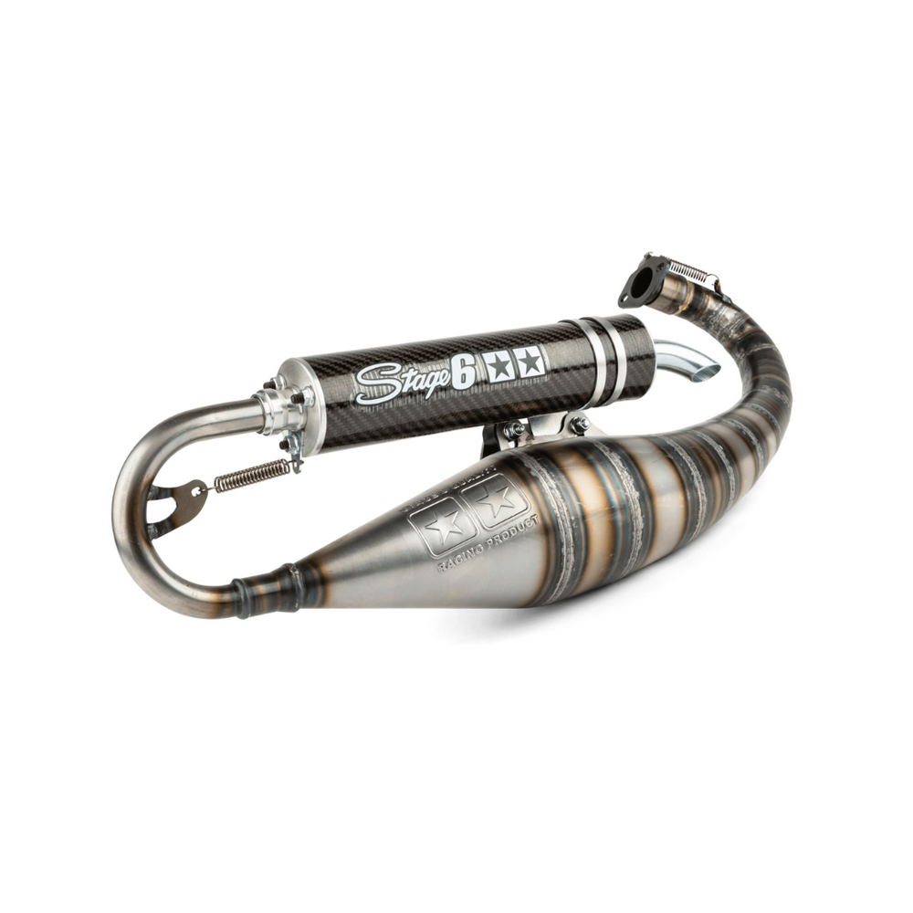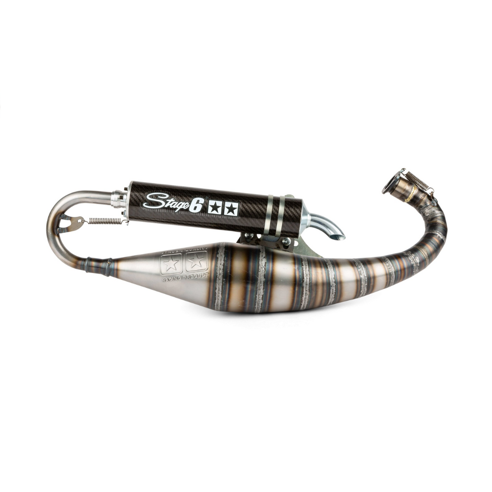 Suitable for 70cc high-end racecylinders such as the Stage6 MKII and Malossi MHR team 2, this exhaust offers unparalleled performance on the circuit. A must-have for serious tuners and racing fans!