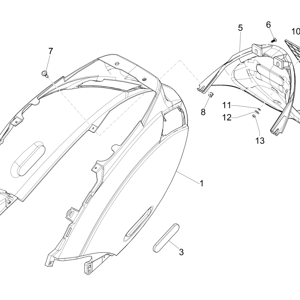 Zip 50 4T NOABS E5 2021-2023 - Achterscherm/Kap & Spatbord