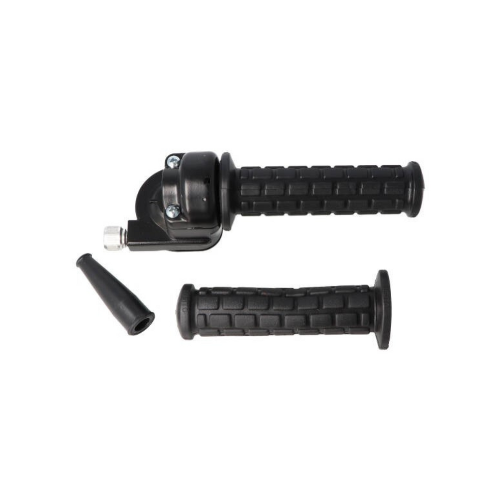 The Lusito M81 throttle in black Is a robust and stylish accessory for your motorcycle, scooter or moped. The ergonomic design ensures a comfortable and sturdy grip, so you can control the speed smoothly. This universal throttle fits on different vehicles and is easy to assemble. The sleek black design gives your vehicle a sporty and modern look.