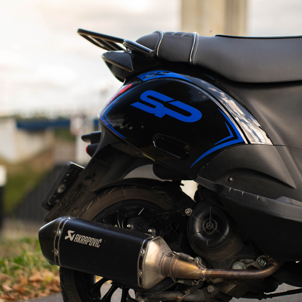 Der Akrapovic Auspuff + Krümmer für Piaggio Zip und Vespa Sprint 4T3V IGET Euro 4 bietet eine perfekte Mischung aus Leistung, Sound und Design. Dieser speziell für 4-Takt-3-Ventil-Motoren entwickelte Auspuff sorgt für einen sportlicheren Sound, eine bessere Beschleunigung (bei 80 ccm ohne alle Einschränkungen) und ein erstklassiges Erscheinungsbild. Das leichte, langlebige Material erhöht die Manövrierfähigkeit Ihres Rollers und erfüllt gleichzeitig die Euro 4-Norm. Ideal für Rollerfahrer, die ihre Piaggio Zip oder Vespa Sprint mit Sound und Stil aufwerten möchten.