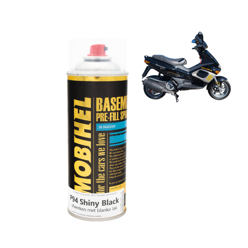 De Spuitbus Shiny Black P94 375ML is een originele kleur van Piaggio Scooters. Deze hoogwaardige lak zorgt voor een strakke, glanzende afwerking en een perfecte kleurmatch met de originele fabriekstint. Ideaal voor het herstellen of bijwerken van kappen en onderdelen van je scooter.