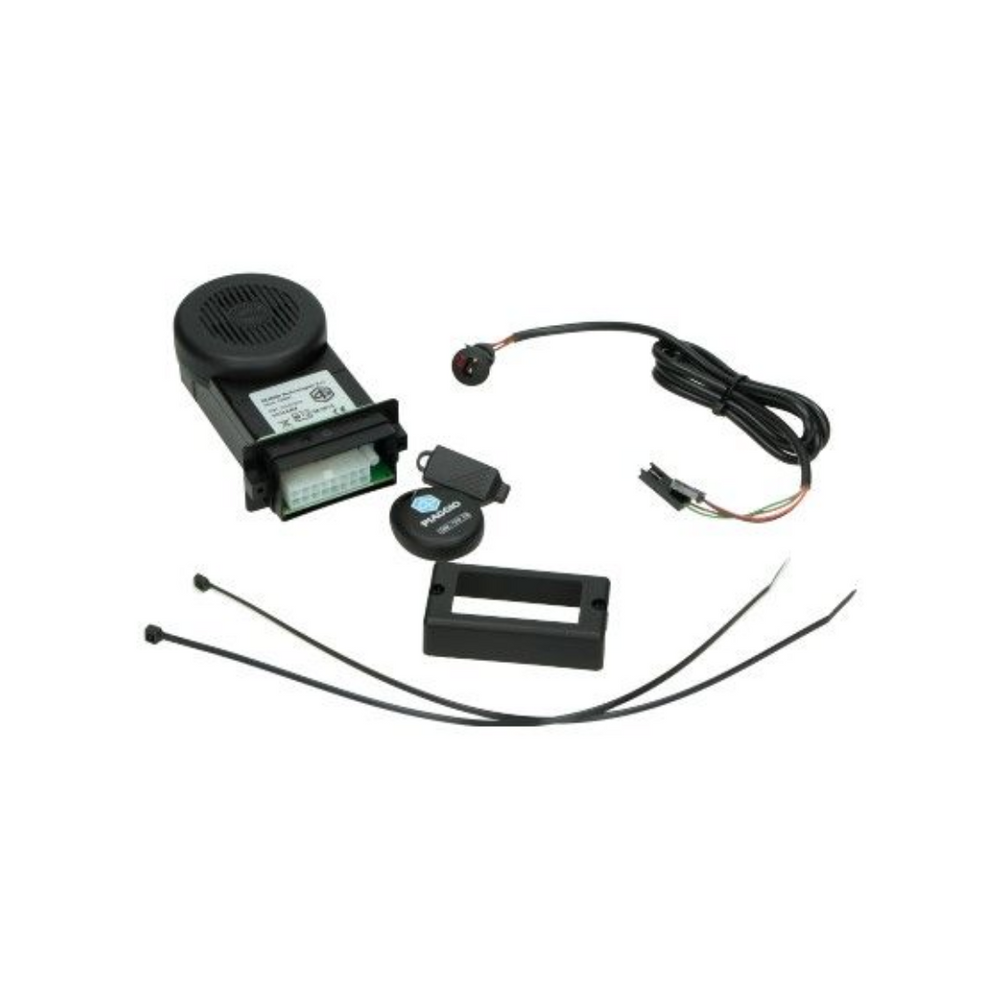 Proteggi il tuo scooter in modo ottimale con l'allarme di furto di e-lux originale. Questo allarme di alta qualità ha una chiave elettronica, un telecomando con due pulsanti e un blocco di partenza integrato per la massima sicurezza. Con l'alimentazione automatica, il sistema offre prestazioni affidabili. NB: Il cavo di connessione non è incluso e deve essere ordinato separatamente. Scelta perfetta per Vespa Sprint, Primavera, Piaggio Zip e Gilera Runner. Scegli la tranquillità con questo sistema di allarme premium!