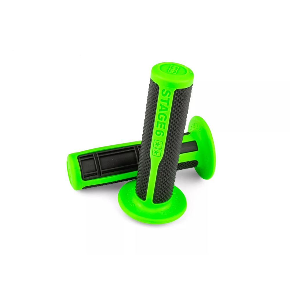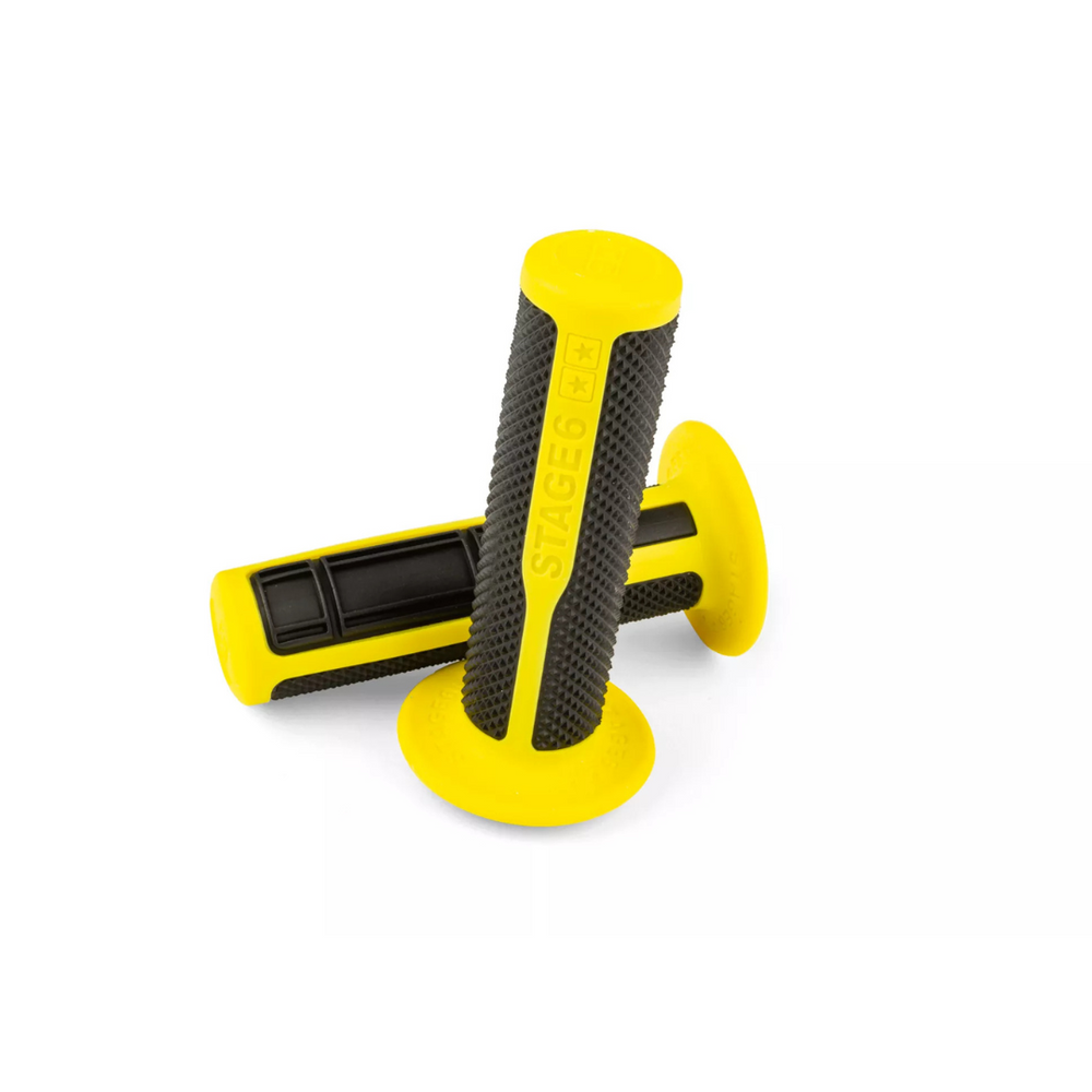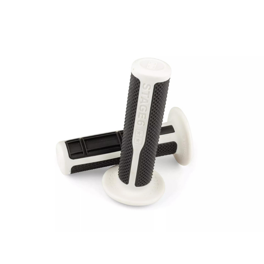 Le maniglie Ultimate Stage6 sono l'aggiornamento perfetto per il tuo scooter o moto, progettato per il massimo comfort e presa. Queste maniglie a doppio composito con mezzo profilo waffle / diamond offrono una presa eccellente, dando un controllo ottimale durante la guida. Con una lunghezza di 125 mm, un diametro di 22 mm a sinistra e 25-26 mm a destra, sono adatti a tutti gli sterzo standard.