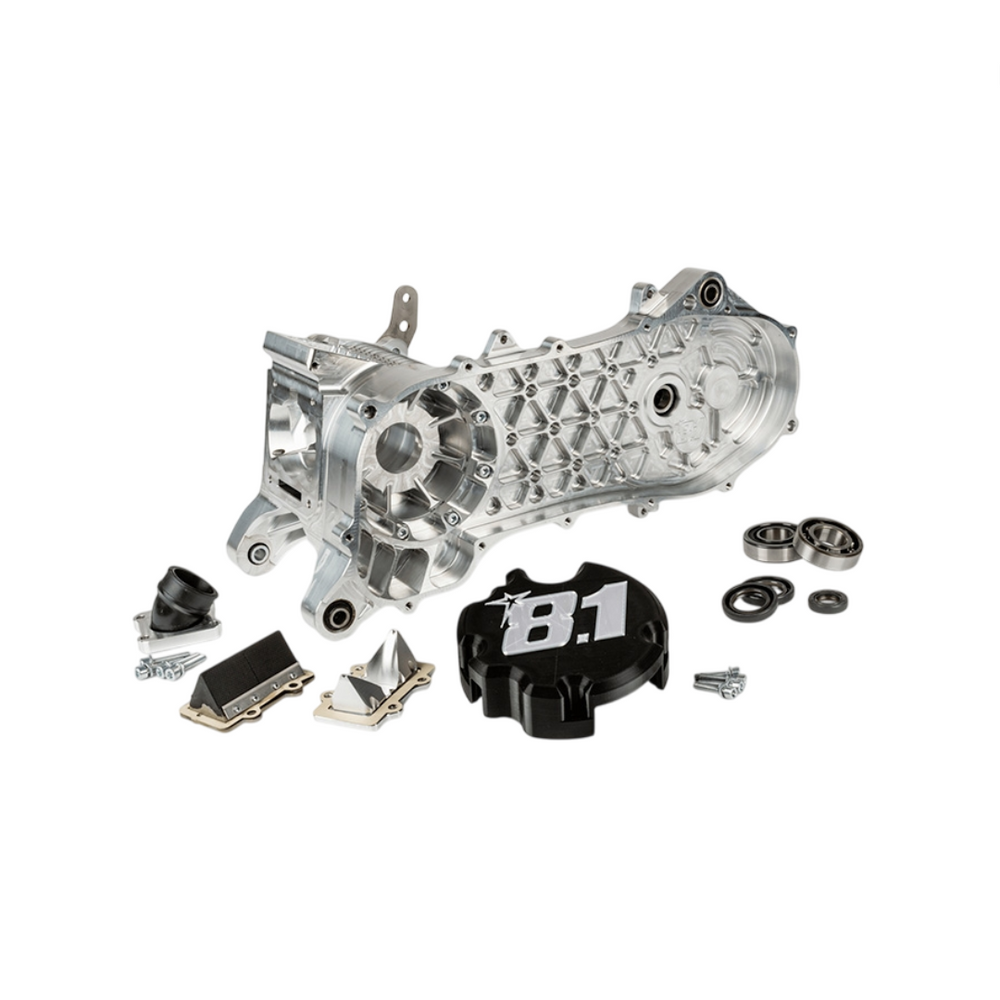 Aggiorna il tuo scooter Piaggio a 2 tempi con il caricatore di motociclette corta 8.1 Fireblade 100cc, appositamente progettata per le prestazioni definitive. Questo Carter di alta qualità è completamente CNC-GEFREESD da alluminio solido e adatto per un asse oversize da 25 mm. Grazie ai più grandi diametri termici, offre spazio per l'albero a gomiti 8.1/R-18, C47 B100 Ø84, che garantisce una maggiore domanda di massa e più potenza.