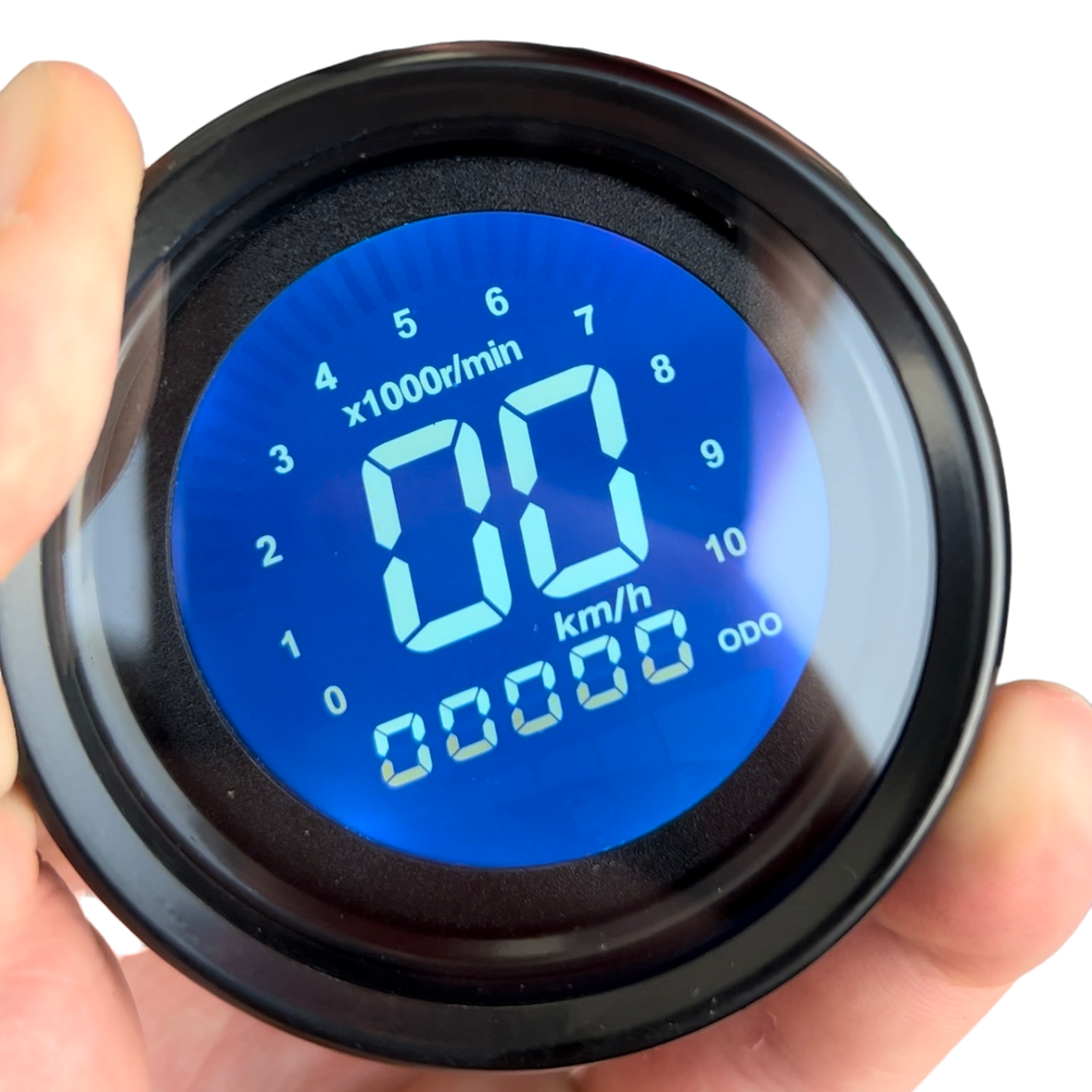 Il contatore digitale contiene anche un menu separato in cui è possibile regolare le gomme e l'unità di velocità. Per assemblare questo contatore, la dashboard in cui si trova il contatore dovrà essere regolata, questo è un video di montaggio completo di su YouTube e invieremo un manuale tramite e -mamail dopo l'acquisto. Se vuoi costruire il contatore digitale in un altro scooter, ciò è anche possibile, questo dovrà solo armeggiare completamente.