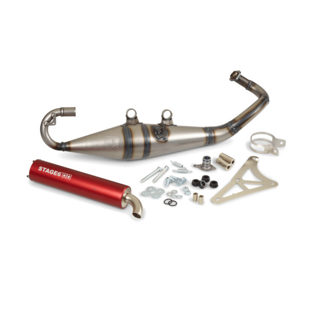 Nota: per motivi di omologazione ci sono due spine negli punti vendita MK2 di Stage6 Pro Replica. Uno è nella varietà e nell'altra nel silenziatore. La rimozione di queste restrizioni è a tuo rischio e non più legale, quindi tienilo a mente. Aggiorna ora il tuo scooter con lo scarico MK2 Stage6 Pro Replica per una combinazione ottimale di prestazioni e conformità legale.
