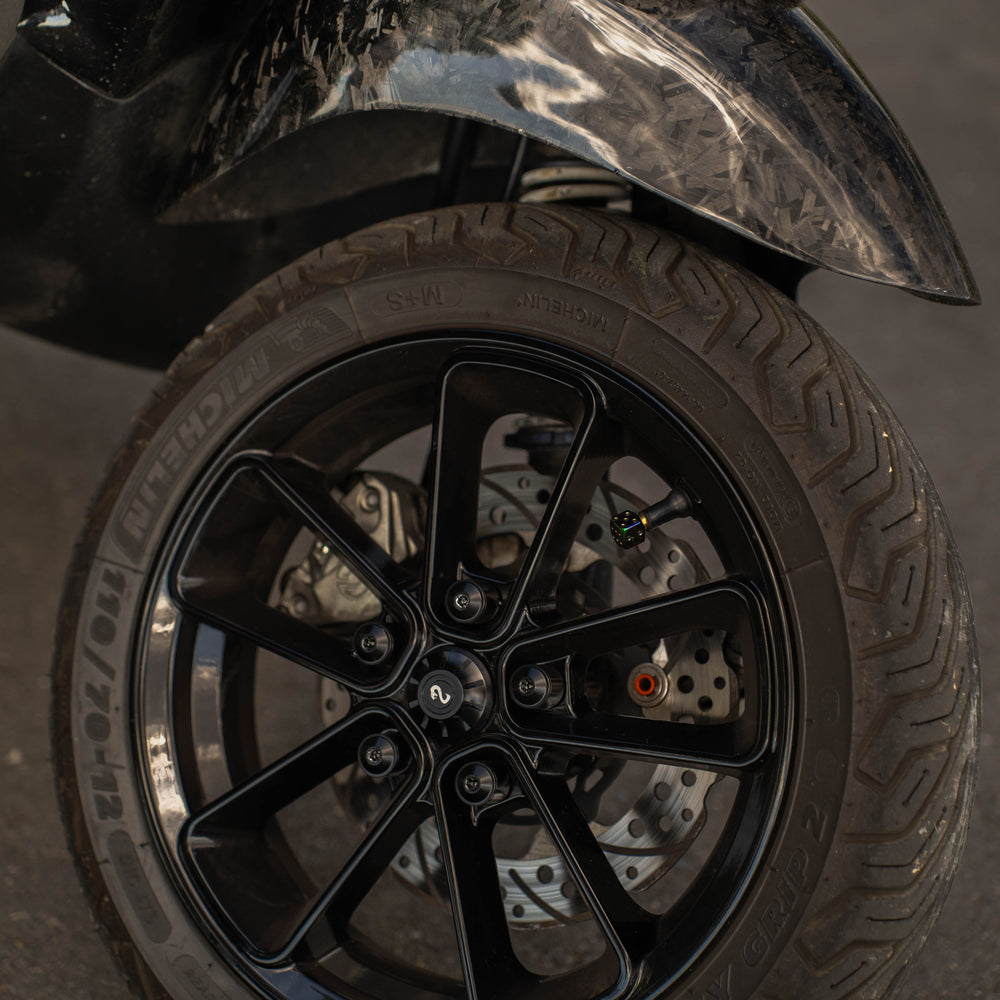 Dai al tuo sprint Vespa di Zip SP un look esclusivo e sportivo con la serie SIP Pordoi da 12 pollici in nero lucido. Questo bordo premium è progettato con 5 doppi raggi che garantiscono un aspetto potente e moderno, perfetto per gli amanti degli eleganti aggiornamenti.