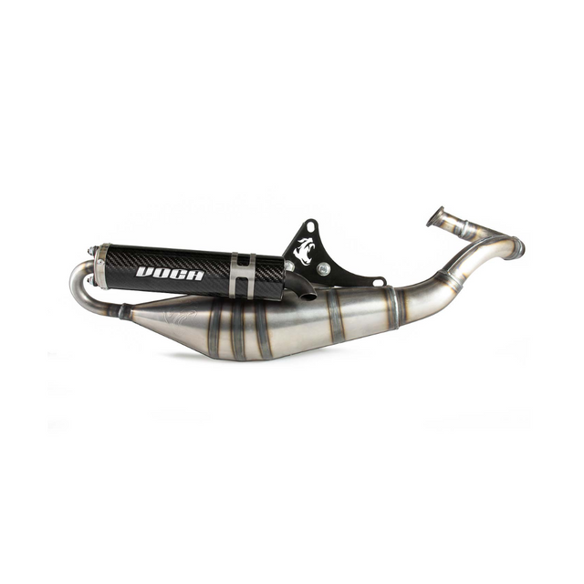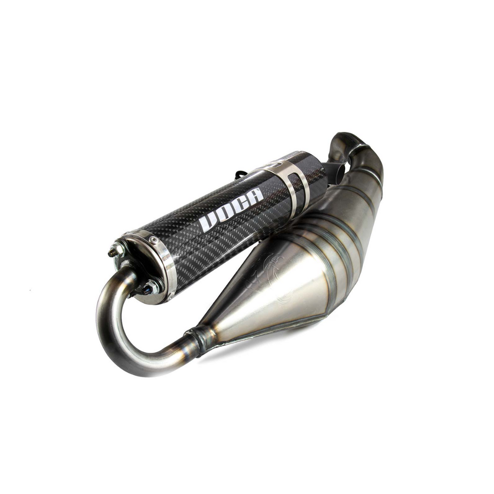 ESAY Voca 50/70cc Carbon Piaggio 2 ictus, il sistema di scarico Voca Sabotage V2 è un assoluto assoluto. Con un cilindro standard da 50 cc, il Voca Sabotage V2 di scarico di scarico è raggiungibile. Con un cilindro sportivo da 70 cc, questo sistema di scarico Voca diventa una vera centrale elettrica dopo aver rimosso la riduzione della flangia di scarico (se il sistema non viene utilizzato su strade pubbliche).