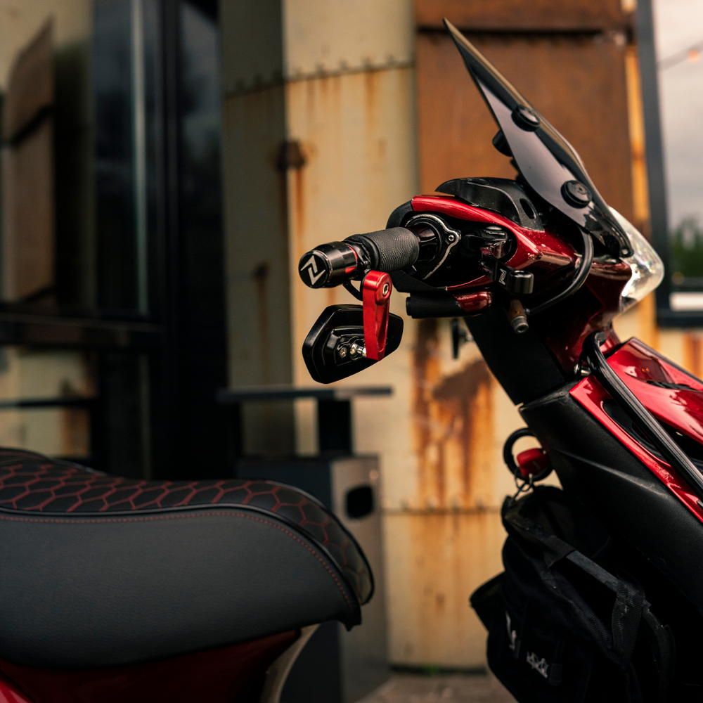 Volevi davvero manici e specchi alla fine? Quindi questo è l'affare perfetto perché risparmi fino al 20% con questo accordo! Le maniglie e gli specchi di fine bar con specchio blu sono quindi universalmente adatti a più scooter come un Piaggio Zip, Vespa Sprint, Gilera Runner e Piaggio Skipper.