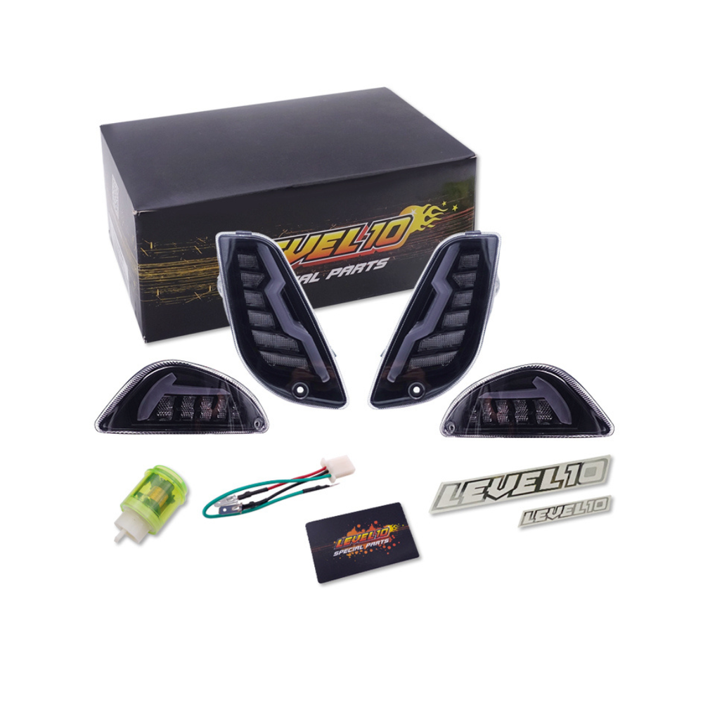 De Level 10 LED knipperlichtset met Flow/Matrix-effect is bedoeld ter vervanging van de standaard knipperlichten op Vespa LX en Vespa S scooters. Deze LED-set geeft een visueel opvallend, doorlopend “flow” of matrix-lichtpatroon, wat de zichtbaarheid vergroot en de scooter een moderne, high-tech uitstraling geeft. Dankzij de juiste pasvorm is montage eenvoudig op de originele bevestigingspunten zonder ingrijpende aanpassingen.
