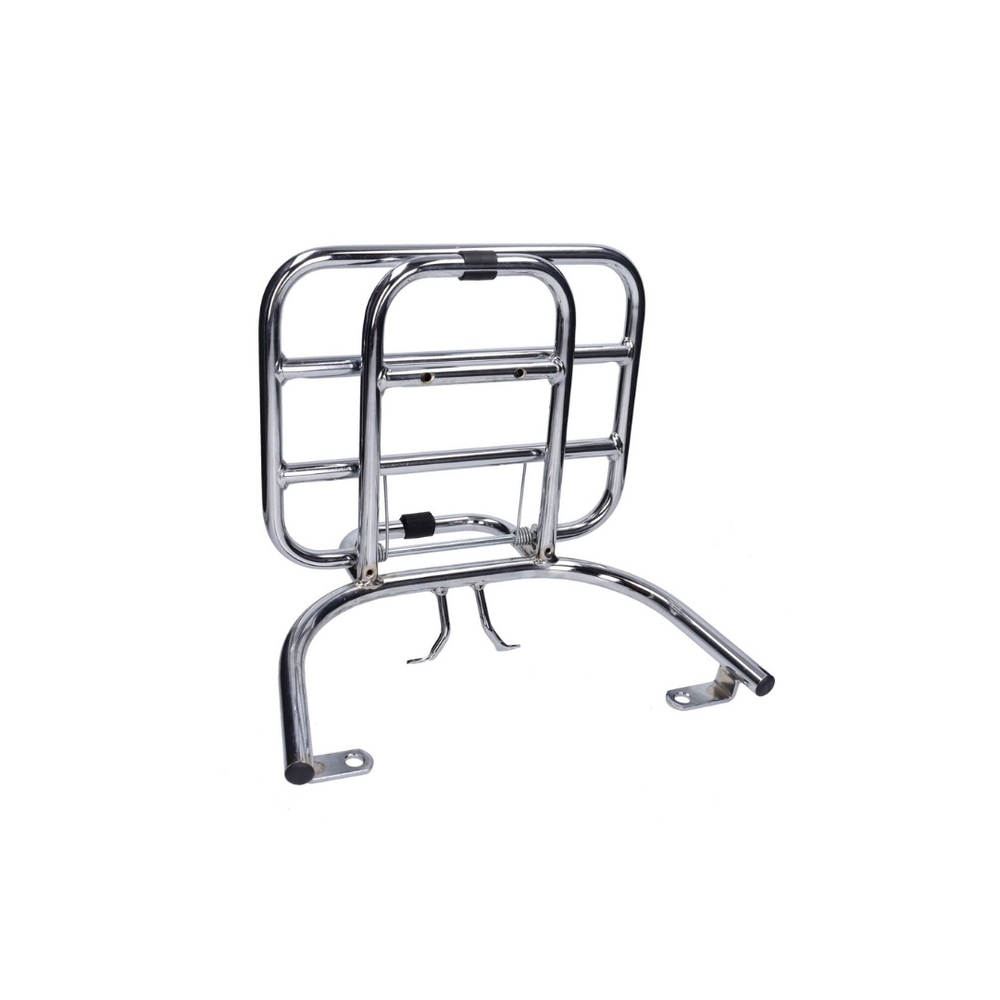 Verbeter de functionaliteit van je BTC Riva of AGM VX50 scooter met onze opklapbare chrome achterdrager. Deze hoogwaardige drager biedt niet alleen extra bagageruimte, maar ook een stijlvolle uitstraling. Perfect passend en duurzaam, deze achterdrager maakt jouw scooter klaar voor elke rit. Bestel vandaag nog voor meer gemak en een verbeterde rijervaring!
