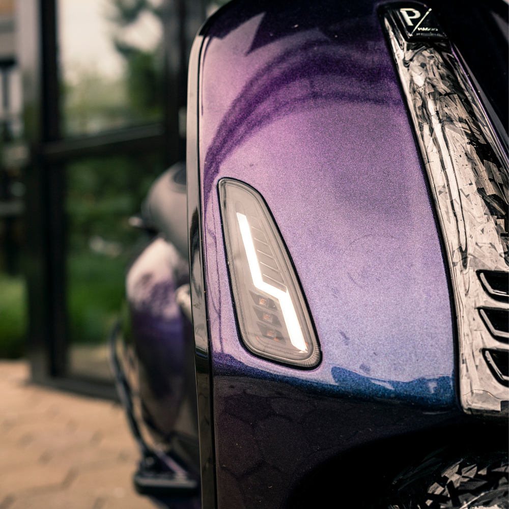 Maak jouw Vespa Sprint of Vespa Primavera helemaal af met de Level10 LED knipperlichten. Deze gave LED-verlichting geeft je scooter een unieke uitstraling dankzij de bliksemschicht-vormige dagrijverlichting en het flow-knipperlicht, ook wel Audi-weglopend knipperlicht genoemd.