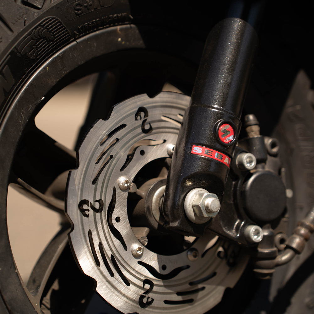 De Fenom remschijf voor Piaggio Zip standaard vorken is een van de eerste custom remschijven voor deze vorken op de markt! Met een uniek design, een strakke afwerking en veel koelgaten biedt deze remschijf optimale koeling en verbeterde remprestaties. Perfect voor rijders die zowel stijl als functionaliteit zoeken. Upgrade jouw Zip met deze exclusieve high-performance remschijf!