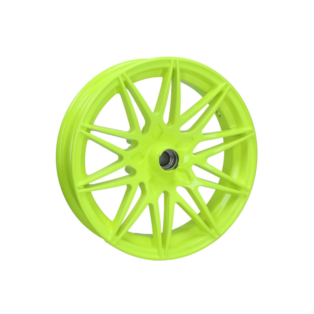 Upgrade je Piaggio Zip met deze Velgenset Special Fluo Geel voor een sportieve en exclusieve uitstraling. Deze complete set bevat alles wat je nodig hebt: een unieke 12 inch voorvelg en 11 inch achtervelg in glanzend zwart, inclusief een oversized remschijf, remklauw adapter, verlengde voorvorkpoten en het benodigde montagemateriaal.