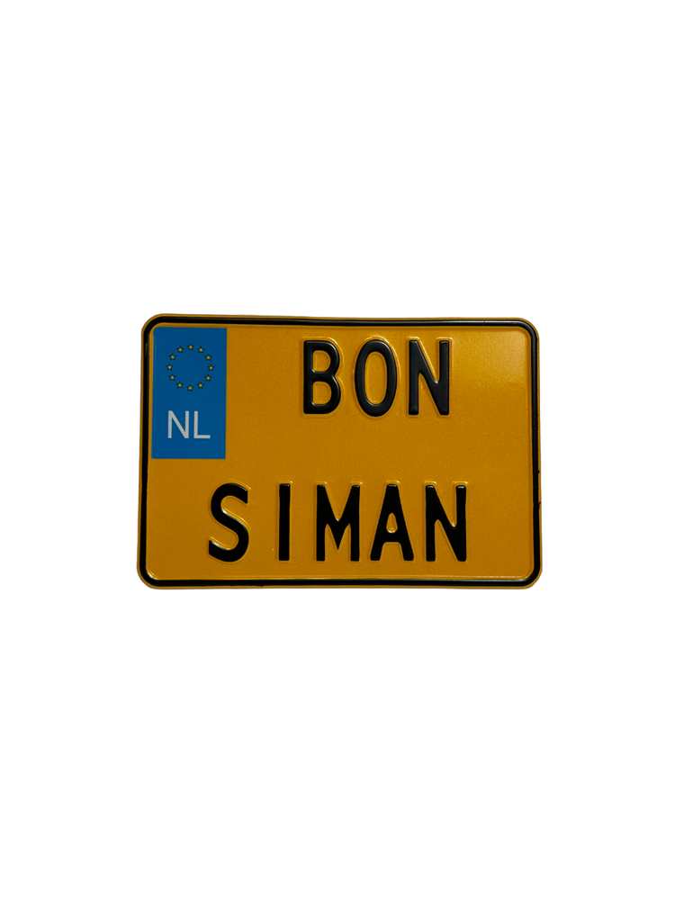 Het gaat hier om een fun kenteken, deze is niet legaal voor op de weg dus gebruik het alleen op privé terrein! Het zijn geen RDW erkende kentekens en wij zijn niet verantwoordelijk voor als dit kenteken op de openbare weg wordt gebruikt. Er mogen daarom geen geldige kenteken combinaties worden gebruikt (of rdw erkende combinaties die erop lijken) wordt dit wel gedaan, wordt het geld direct teruggestort of zonder middenkoppel streepje gemaakt. De motorplaat is gemaakt van het materiaal aluminium.