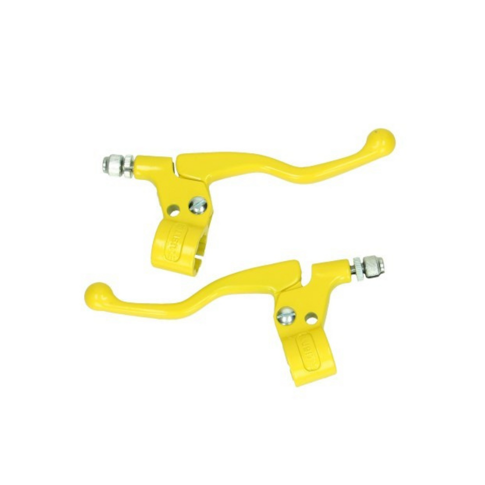De Lusito Kort Gele remhendelset biedt een perfecte mix van functionaliteit en opvallend design. Speciaal ontworpen voor de Puch Maxi, maar dankzij het universele ontwerp ook geschikt voor diverse andere voertuigen. De korte hendels zorgen voor een comfortabele grip en precieze remcontrole, ideaal voor sportieve en dagelijkse ritten. Met de levendige gele afwerking en duurzame materialen geef je je voertuig een frisse en moderne uitstraling.