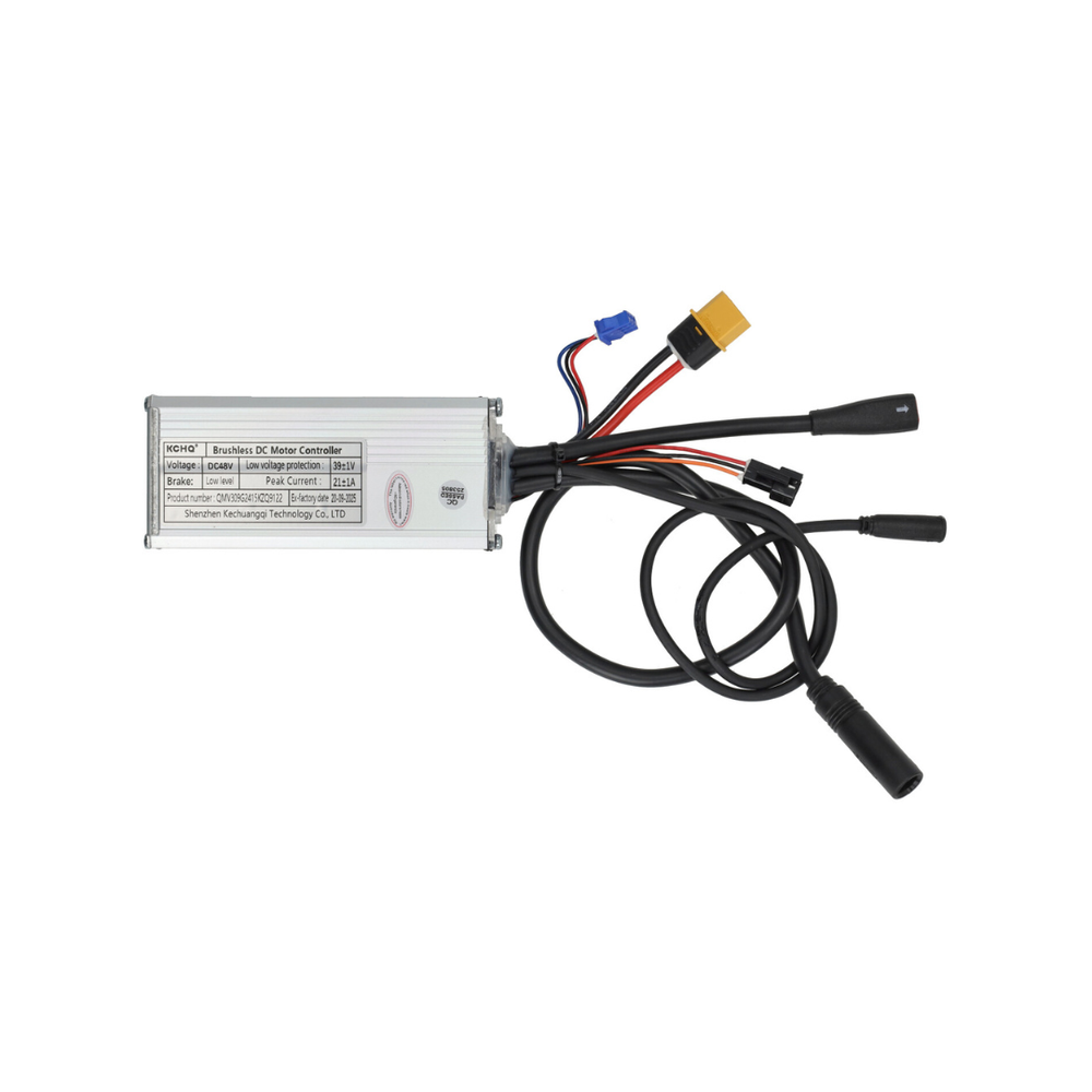 The 48V 21A controller unit (throttle version) is intended for the V20 fat bike with 500W motor. This controller controls the control of the electric motor and ensures stable and reliable operation of the drive system. It is ideal for replacement in the event of a defect or malfunction and connects to the existing wiring with the red plug.