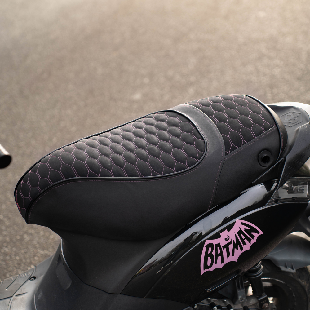 The Fenom Saddle Cover Alcantara Look Pink gives your Piaggio Zip a luxurious and fresh look. The soft Alcantara-look fabric provides extra grip and comfort while riding, while the tight fit gives the saddle a premium finish. A perfect choice to give your Zip a unique, stylish upgrade.